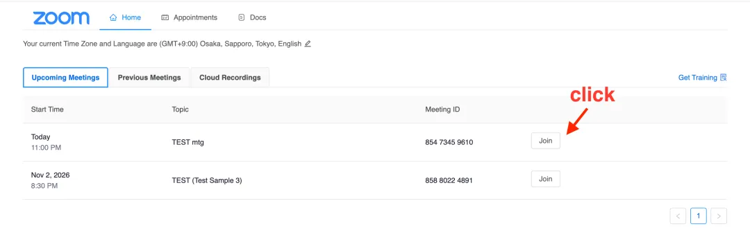 3. Click the “Join” button for the meeting on the screen and the Zoom application will start.