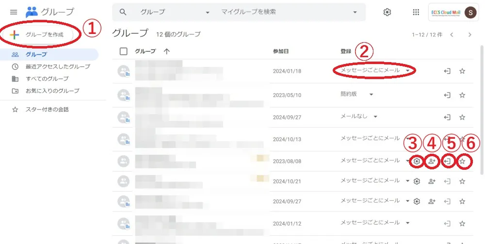 - ECCSクラウドメール利用者向けのGoogleグループ:ECCSクラウドメールの利用者