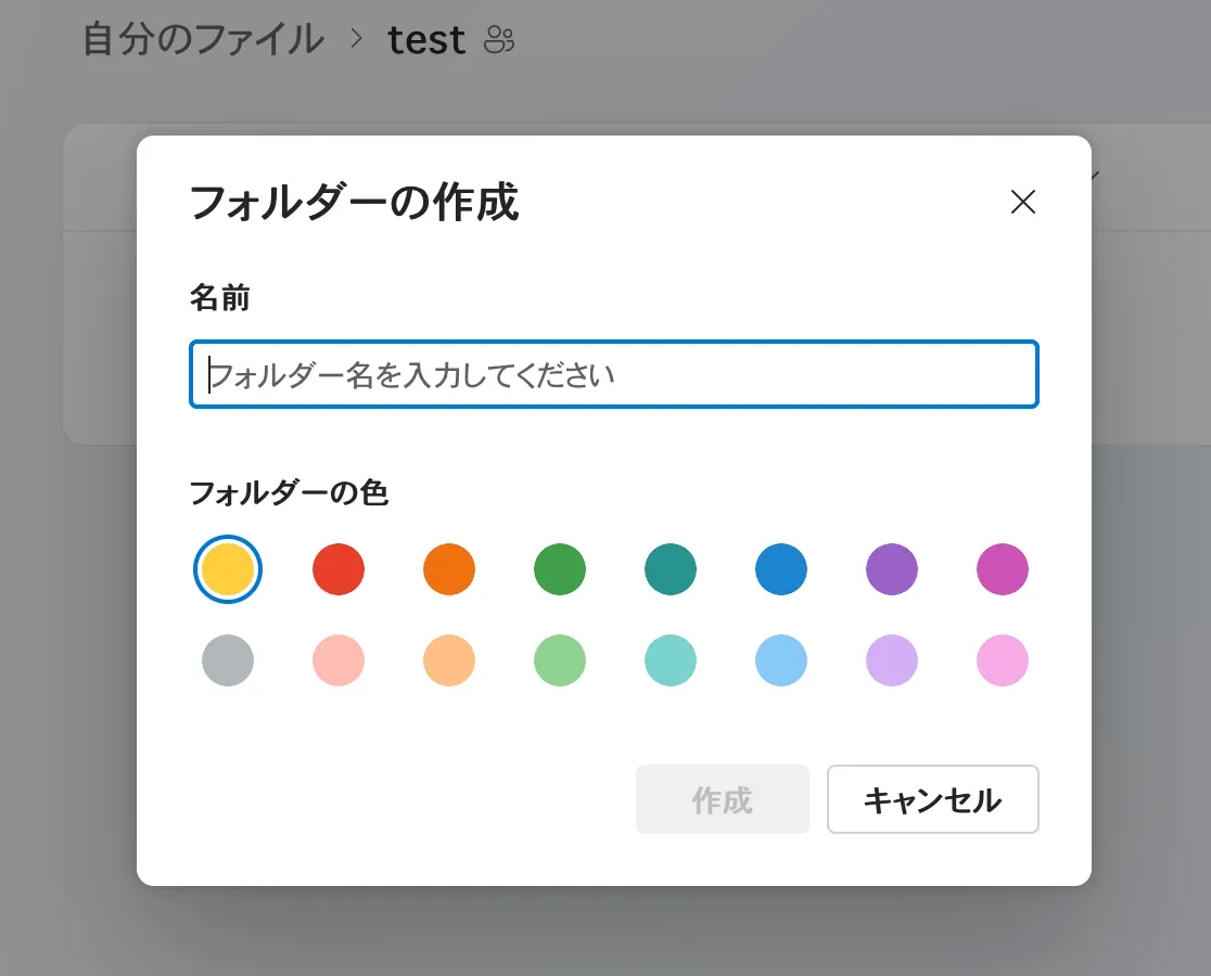 - 画面下部の「作成」を押してください.フォルダーが作成されます.