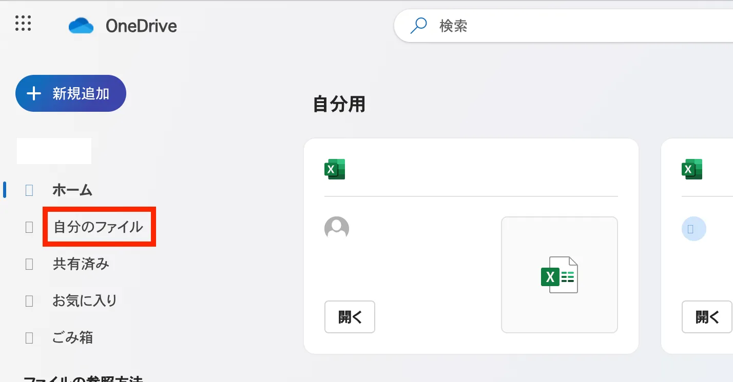 - 「自分のファイル」は,OneDriveにおける最上位のフォルダに相当します.