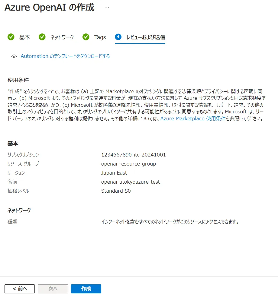 openai-utokyoazure-testとしています. - 価格レベル: