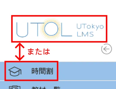 を押すと左側に表示されるメニュー)のUTOLのロゴか,「時間割」ボタンを押しても移ることができます.