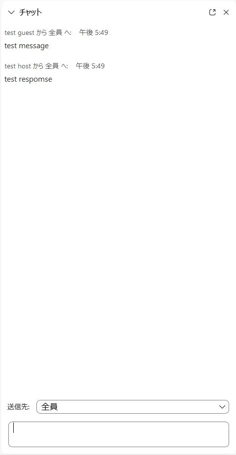 - 送信先: 送信する相手を変更できます.「全員」を選択すれば全員に送信されます.
