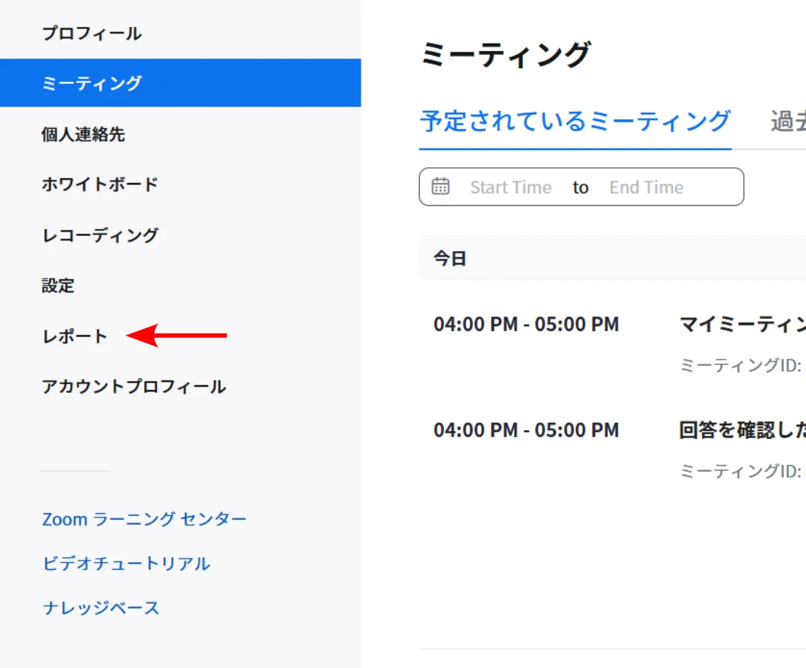- 自分のスケジュールしたミーティングが,リストとして表示されます.登録者の回答を閲覧したいミーティングの名前を押してください.